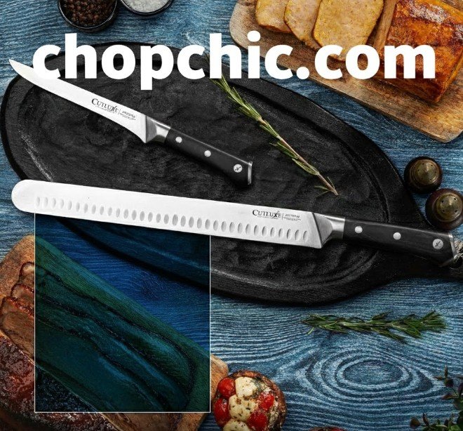 The Cutluxe Artisan Series is a specialized toolset for large format proteins. It bridges the gap between commercial butcher tools and home kitchen aesthetics.