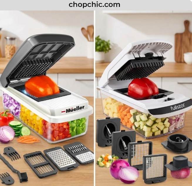 Two big companies, Mueller Austria and Fullstar, really run the show in this market. They both claim to chop your prep time in half, but they go about managing the force with different engineering ideas. We really dug into the blade sharpness, how tough the plastic was, and if the hinges would actually last. We wanted to figure out which one could truly make it through a whole year of cooking every single day.