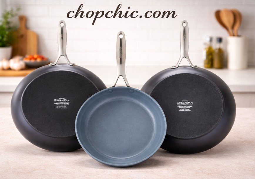 - Hard-Anodized Body with Magneto Base: The core of the pan is made from heavy-duty, hard-anodized aluminum, which is incredibly resistant to scratches and warping. Furthermore, GreenPan added their “Magneto” base, ensuring these pans work flawlessly on induction stovetops without losing heat efficiency.