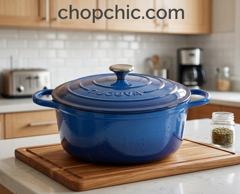Priced at a fraction of luxury French competitors, the Nuovva 6.4-Quart Enamelled Cast Iron Dutch Oven offers exceptional value. It delivers the heavy thermal mass and tight steam seal required for beautiful sourdough oven spring. It also seamlessly transitions into a low-maintenance, easy-to-clean braiser for everyday cooking. As long as you respect the limitations of budget enamel and avoid aggressive, 500°F dry preheating, this massive pot will reliably produce stunning artisan loaves without emptying your wallet.