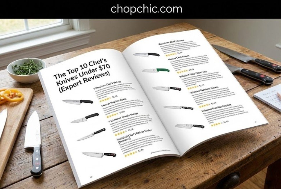Determining a good, reliable chef’s knife that doesn’t break the bank involves trade-offs between steel quality, handle ergonomics, and overall durability. Our full review focuses on the highest performing models under $70 to show that professional-level cutting precision is achievable without committing to a four-figure budget.