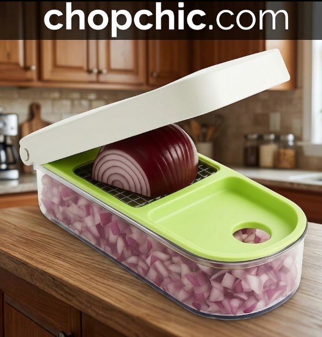 Onions are where this tool earns its reputation. Mommy, who described decades of uneven knife cuts, called the Chop Wizard her favorite kitchen tool after switching. The catch container traps the fumes, which reduces eye irritation. The speed of the cut means less time exposed to the onion vapors overall.